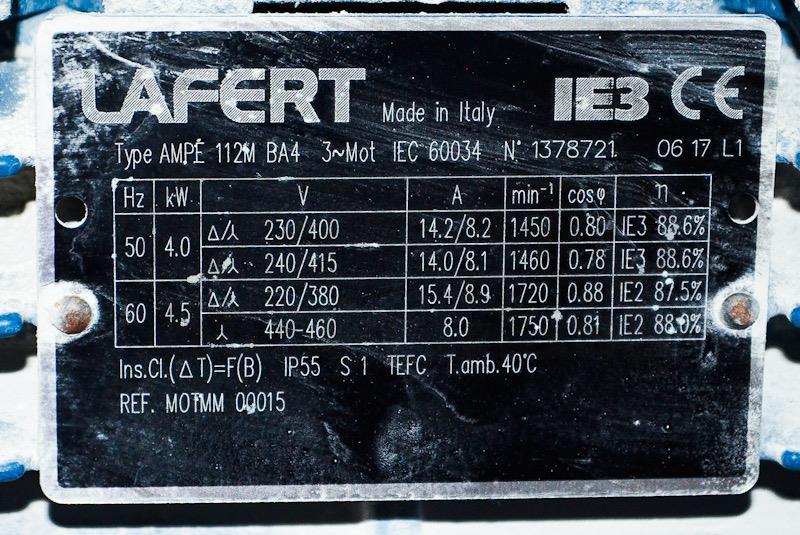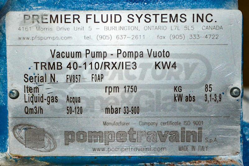 POMPETRAVAINI/PREMIER FLUID SYSTEMS "TRMB 40-110/RX/IE3" 4.5 kW (6 HP) Vacuum pump, with Water cooling tank.
